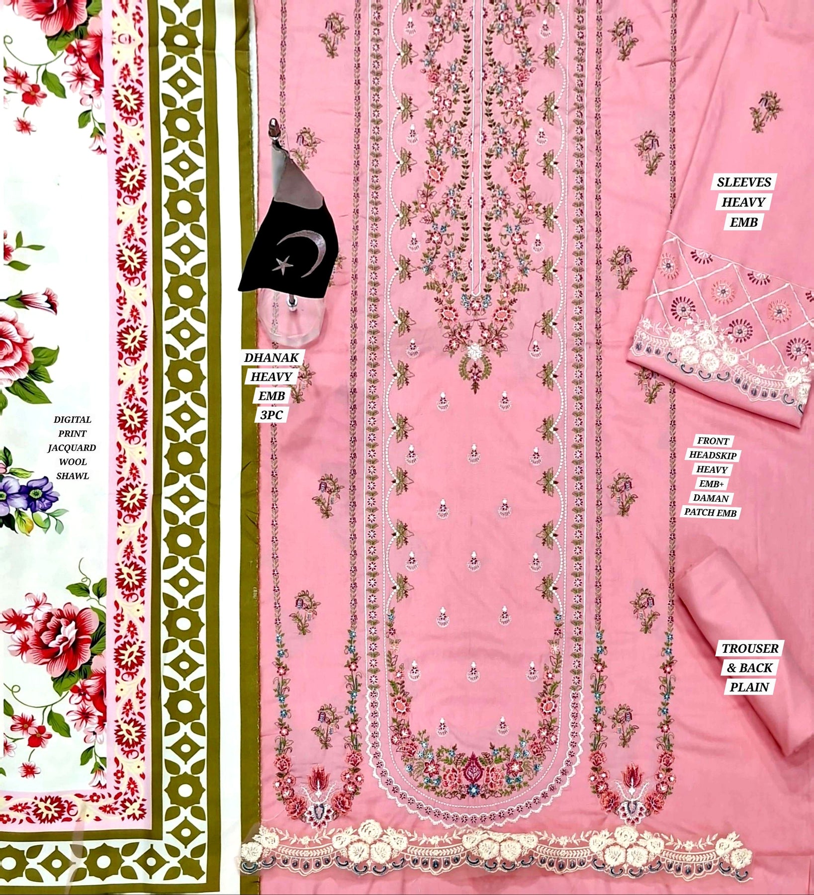 Jacard whool shawl: three-piece ZARA SHAHJAHAN-Danak EMB set features a luxurious jacard whool shawal. The intricate design and high-quality material make it a versatile and stylish addition to any wardrobe. Stay warm and fashionable in this must-have set
